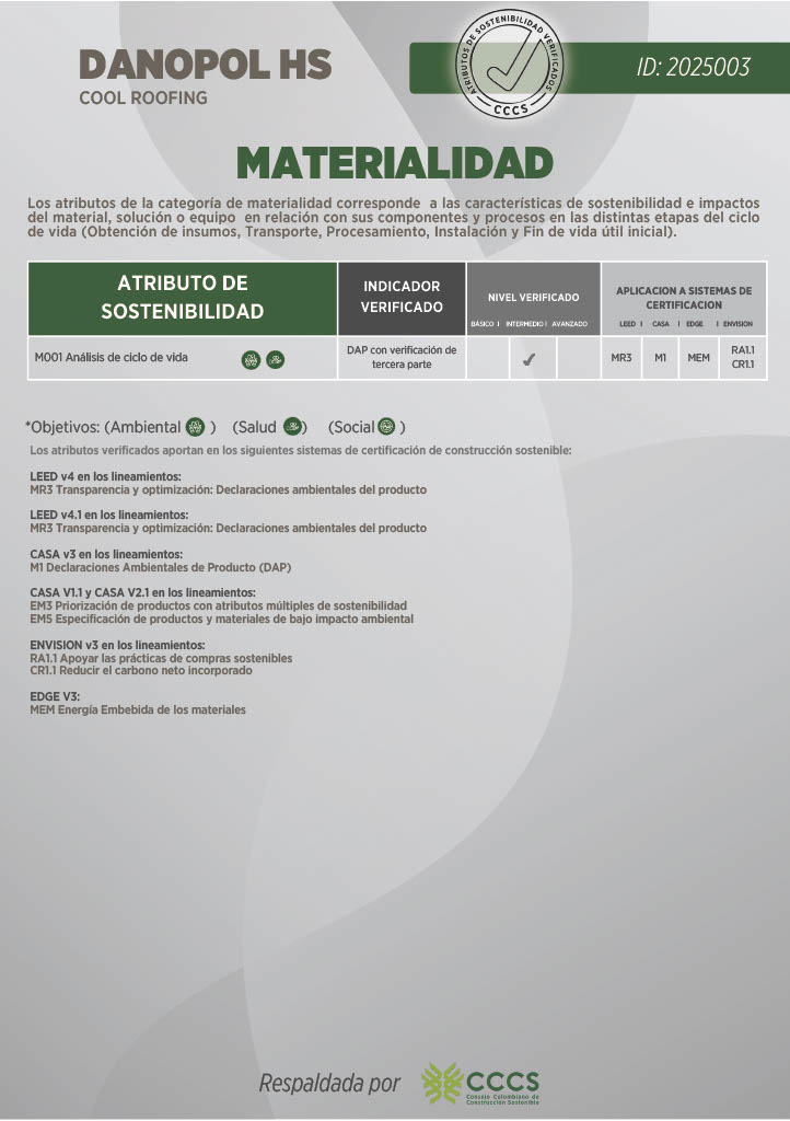 DANOPOL® HS es una membrana de PVC plastificada reforzada con malla de fibra de poliéster, ideal para impermeabilización de cubiertas en obra nueva y rehabilitaciones. Es resistente a la intemperie y rayos UV.